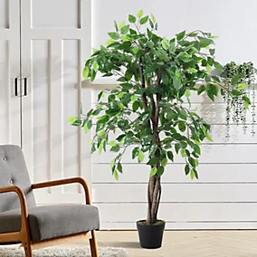 107cm Green & Black Ficus Tree Artificial plant in Black Pot