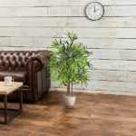 Brighten your home or garden with one these beautiful artificial bamboo plants from Christow. Pre-potted with bamboo stems and dense foliage for immediate display, they’re a low maintenance alternative to real bamboo which look every bit as beautiful and authentic. Realistic Lush Green Leaves Great care has been taken to make the leaves look as lush and realistic as possible. The leaves are made from polyester to replicate the size and thickness of real bamboo leaves. Durable Natural Bamboo Stems Whereas some artificial plants have plastic stems, our bamboo plants have natural bamboo stems for superior durability. Please be aware that the colour may vary from plant to plant. Displaying Your Plant Outdoors Although our plants are for indoor use, they look equally stylish decorating a patio or decking. If you’re displaying your plant outdoors, we recommend treating it with a UV-protective spray. Pre-Potted with Decorative Moss Our bamboo plants are delivered in pots which are weighted with concrete for stability when displayed indoors. The concrete is disguised by artificial moss for a natural-looking finish. Repotting Your Artificial Plant If you’re displaying your plant outdoors, we recommend repotting it in a larger decorative pot or planter, before firming it down with soil, sand, gravel, or stones to protect it from the wind. Preparing Your Bamboo for Display Like all artificial plants, the leaves and stems may be creased and bent on arrival. By spending time straightening them out, you can create a beautiful display that will last a lifetime. 90cm Artificial Bamboo Plant Size: H93cm x W37cm x D37cm Material of leaves: Fabric (Polyester) Number of leaves: 500 Pot filled with concrete: H13cm x W16cm Weight: 2 to 2.5kg (approx.)