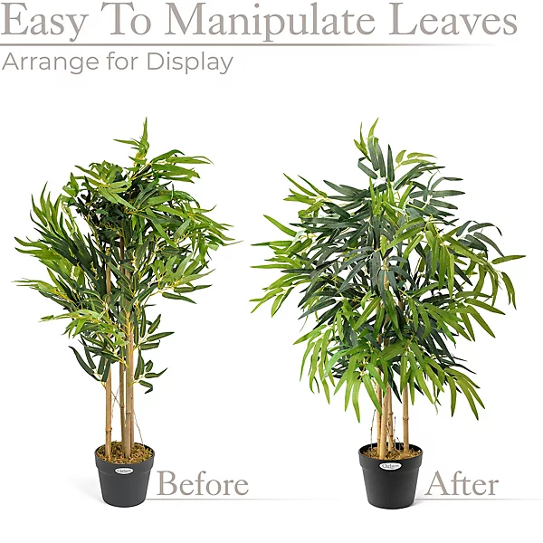 - Stems are made from natural bamboo and lush green leaves are made from easy-clean polyester to give the artificial bamboo plants a beautiful, lifelike appearance