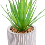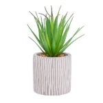 The contemporary succulent in cement pot is a beautiful addition to any home that will give it a natural earthy touch. The green succulent sits in a bed of small stones inside a grey cement pot. This artificial plant can be placed anywhere to give a subtle hint of colour.