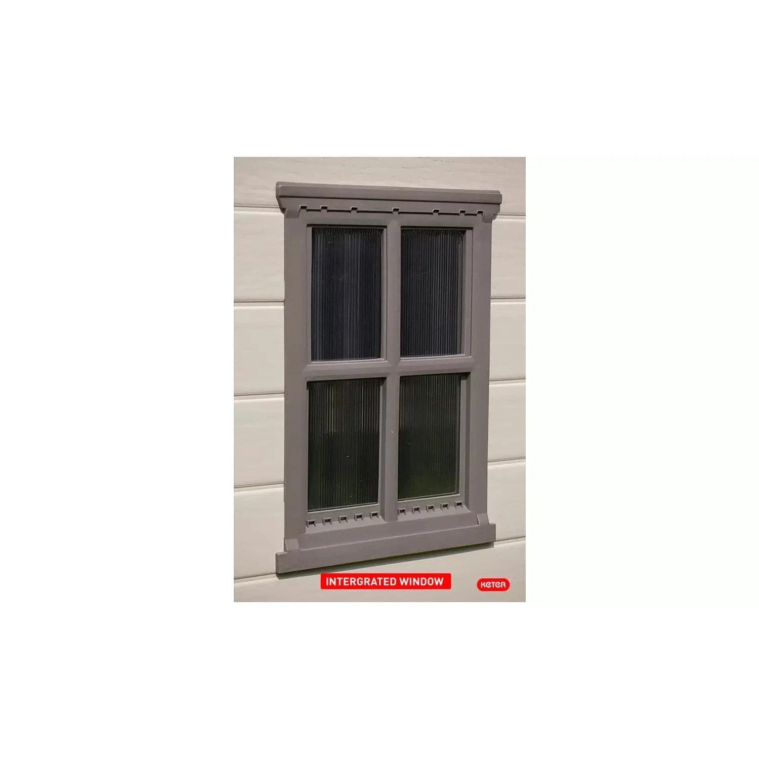 This wood effect shed is constructed out of a weather-resistant plastic with steel reinforcement, providing durability and a low maintenance feature. The Factor 4 x 6 also has a heavy-duty floor panel to give support to your heavy items, built-in ventilation, a window to allow natural lighting and a secondary door that provides a wider entry to give increased accessibility.