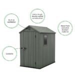 The Keter 4’x6′ Darwin Heavy Duty Plastic Garden Shed – Green will provide ample space for a wide variety of tools and equipment.