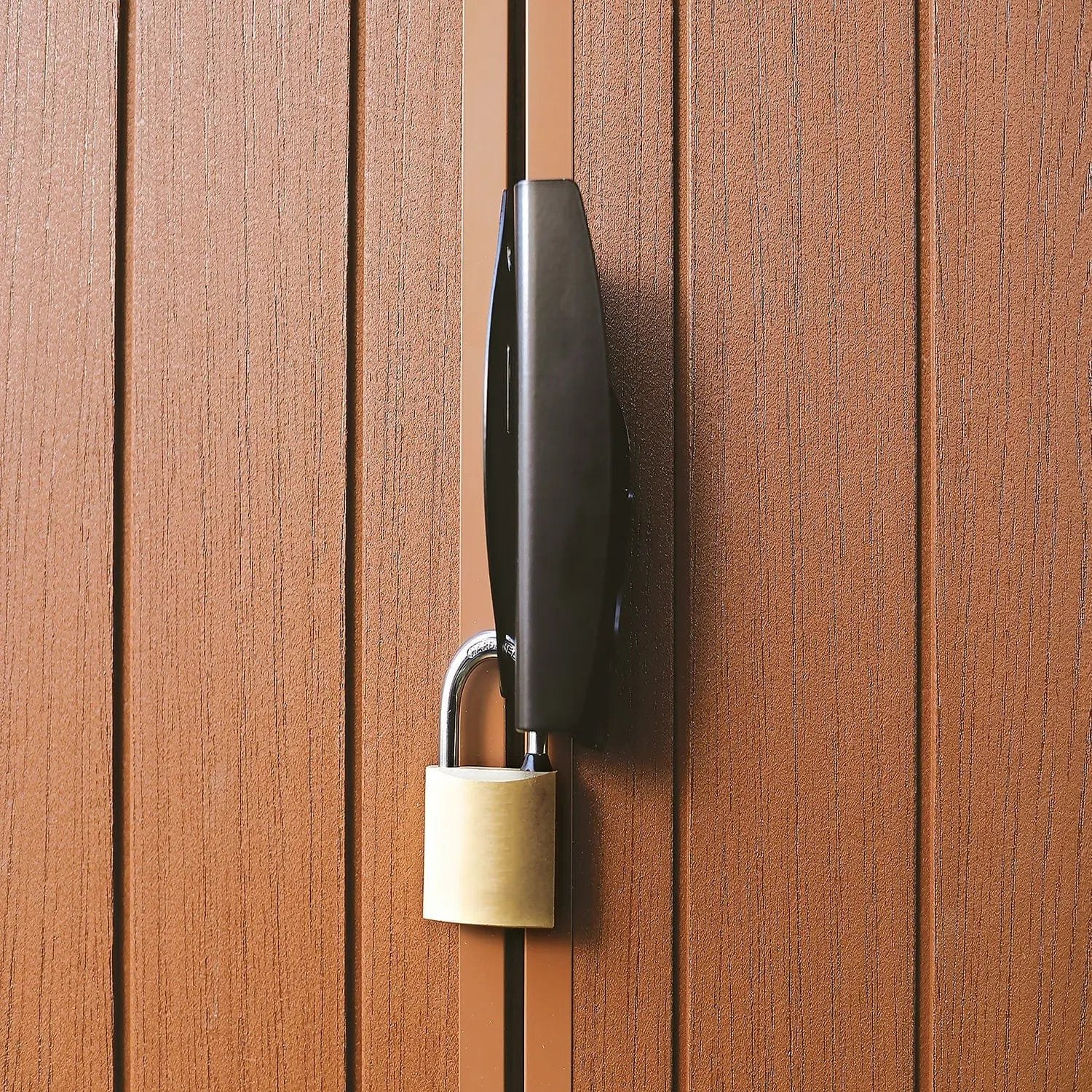 The Darwin 6×8 is the ultimate in patio and garden storage. Forget hoping something will fit, with double doors and an incredibly spacious interior, you know it will. Store your garden tools, gardening equipment, outdoor furniture and much more safely and securely with the added lockable hasp. The Darwin 6×8’s metal reinforced double walled tongue and groove construction is incredibly strong and rigid, and includes practical touches like a vent for air circulation to prevent moisture build up and a window and skylight for a well lit interior.