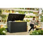 The Keter Java 870 Litre Plastic Storage Box – Grey will help keep your outdoor living space clutter-free and in great shape when you entertain.