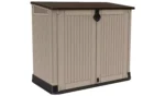 Equally at home indoors or outside, the Store-It-Out MIDI gives you 880L of well-ventilated storage space. From storing your bins to protecting you gardening equipment from the elements, this Keter 880L garden storage box is the perfect addition to any garden. It opens from the top or from the front with its classic look wood-textured doors, and is lockable for complete security. It even has a sturdy built-in floor panel to keep your items clean and dry and a built-in support for a shelf (shelf not included). With the Store-It-Out MIDI, it’s easy to keep your items secure yet accessible.