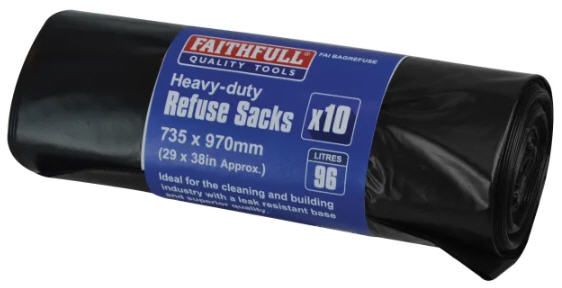 Faithful Heavy-Duty Black Refuse Sacks 10pcs - 96L